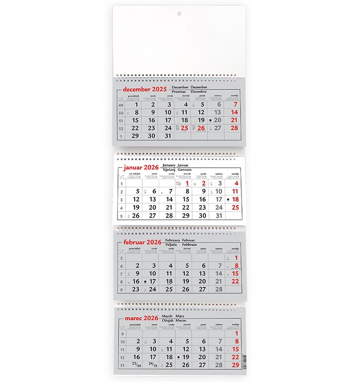 – koledarski podatki v treh jezikih: SLO, ANG, NEM