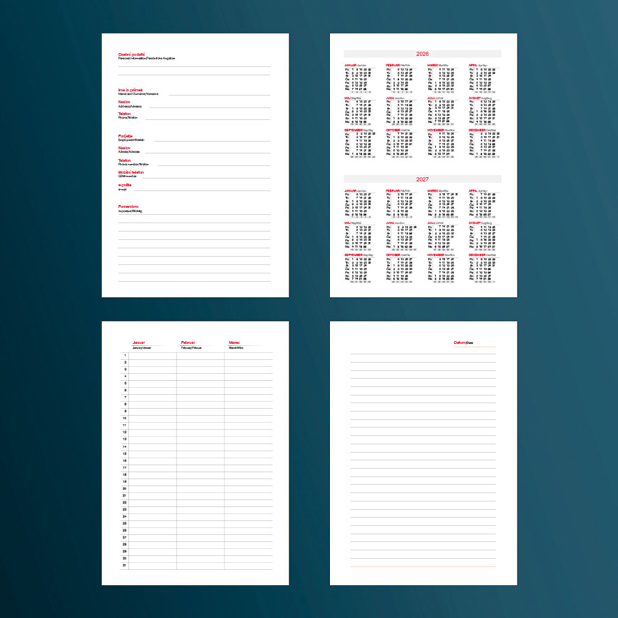 Na vašo željo lahko platnice rokovnika personaliziramo z dizajnom po vaših željah, ki vam ga lahko oblikujemo tudi pri nas.